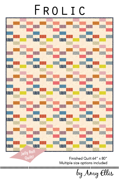 Strip piecing and a Jelly Roll will help you make this quilt in no time! This is a great utilitarian quilt that you and your family will reach for time and again. Make your #Frolicquilt with lots of love!