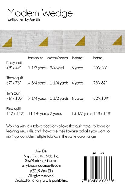 Modern Wedge Quilt Pattern -- Wholesale